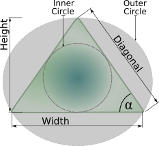 For any such triangle, a circle can be drawn that touches every corner, shown here as 'Outer Circle'. Another circle can be drawn that touches the middle of each side, marked in the diagram as 'Inner Circle'. All three have exactly the same centre-point.