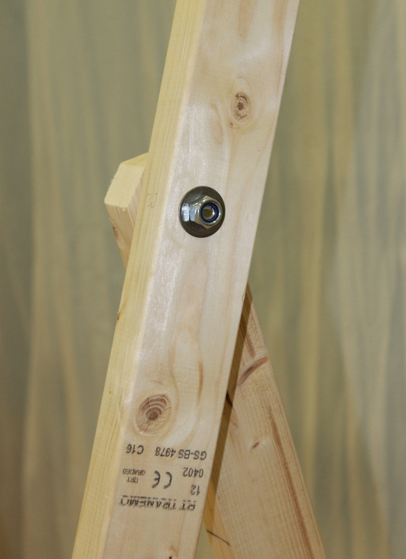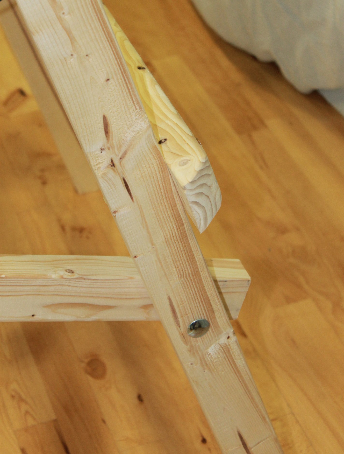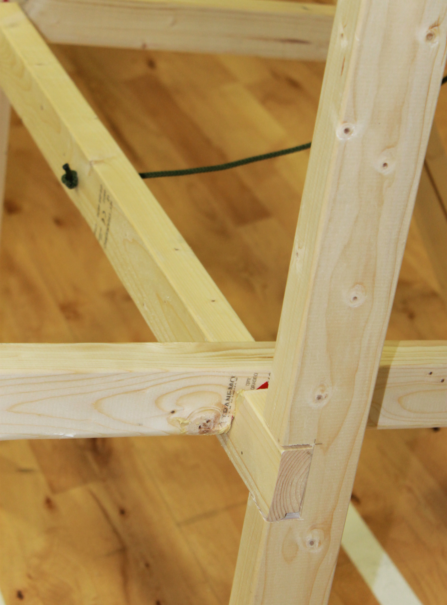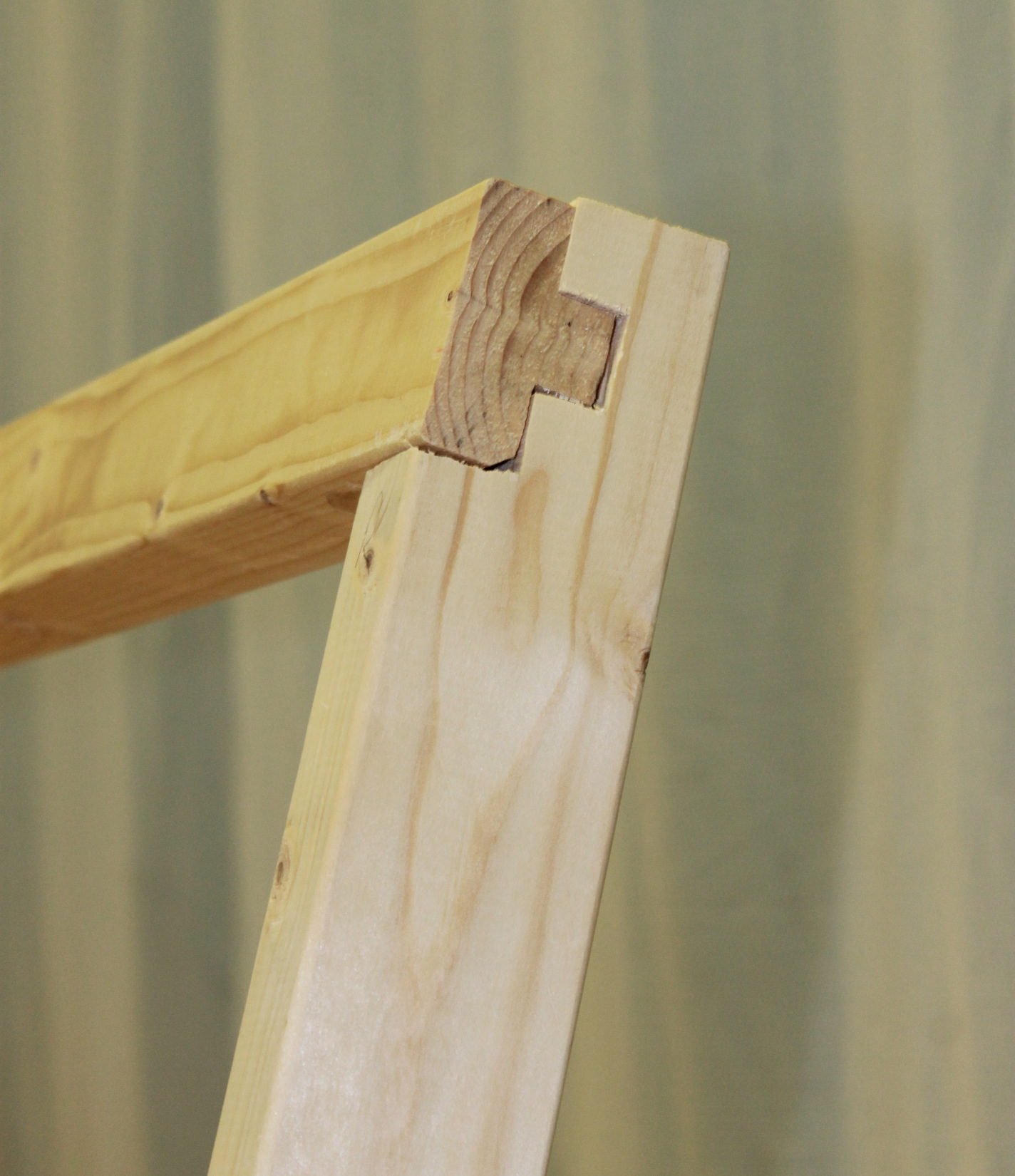 Detail of top cross bar joint to front leg - a simple lap joint will speed up construction time considerably, at the cost of a slight decrease in rigidity.