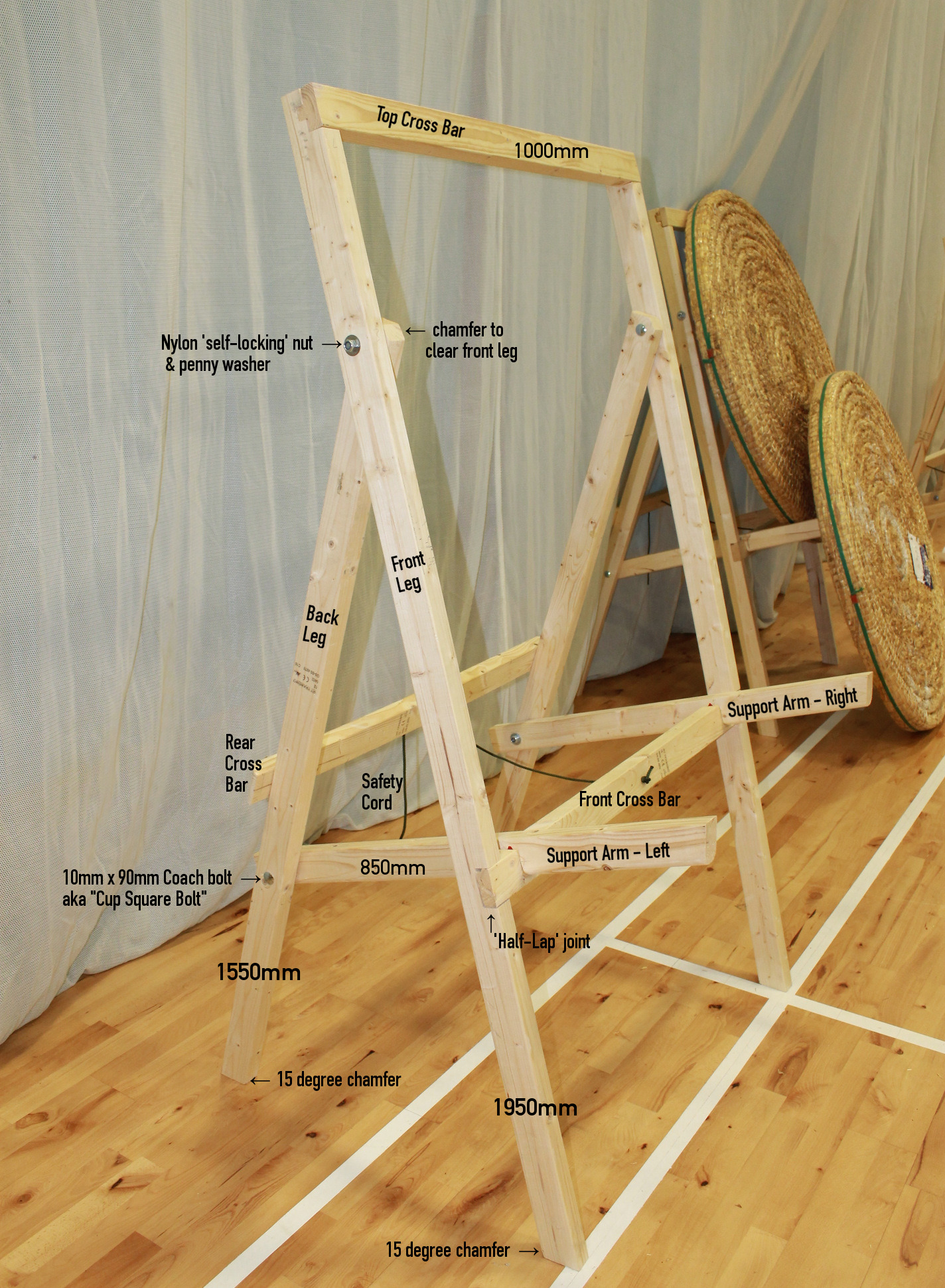 All joints are intended to be screwed from the rear of the stand - this does mean that the length of most of the screws is critical, but dramatically reduces the chance of damaging an arrow through hitting a screw-head.