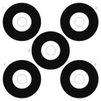 The inner-most five rings of a standard ten-zone scoring face, i.e. 6 points -> 10 points. The reduced size allows two faces side by side.